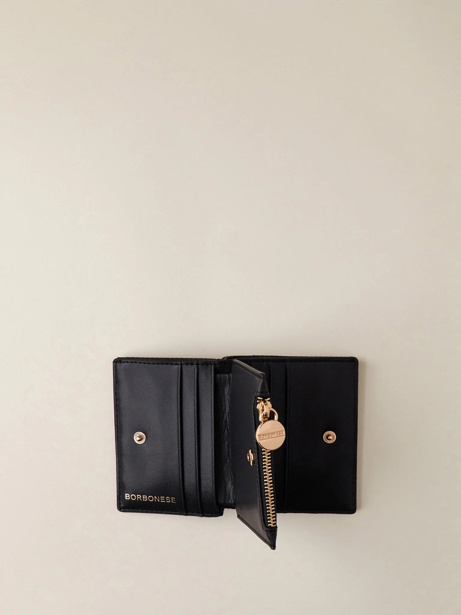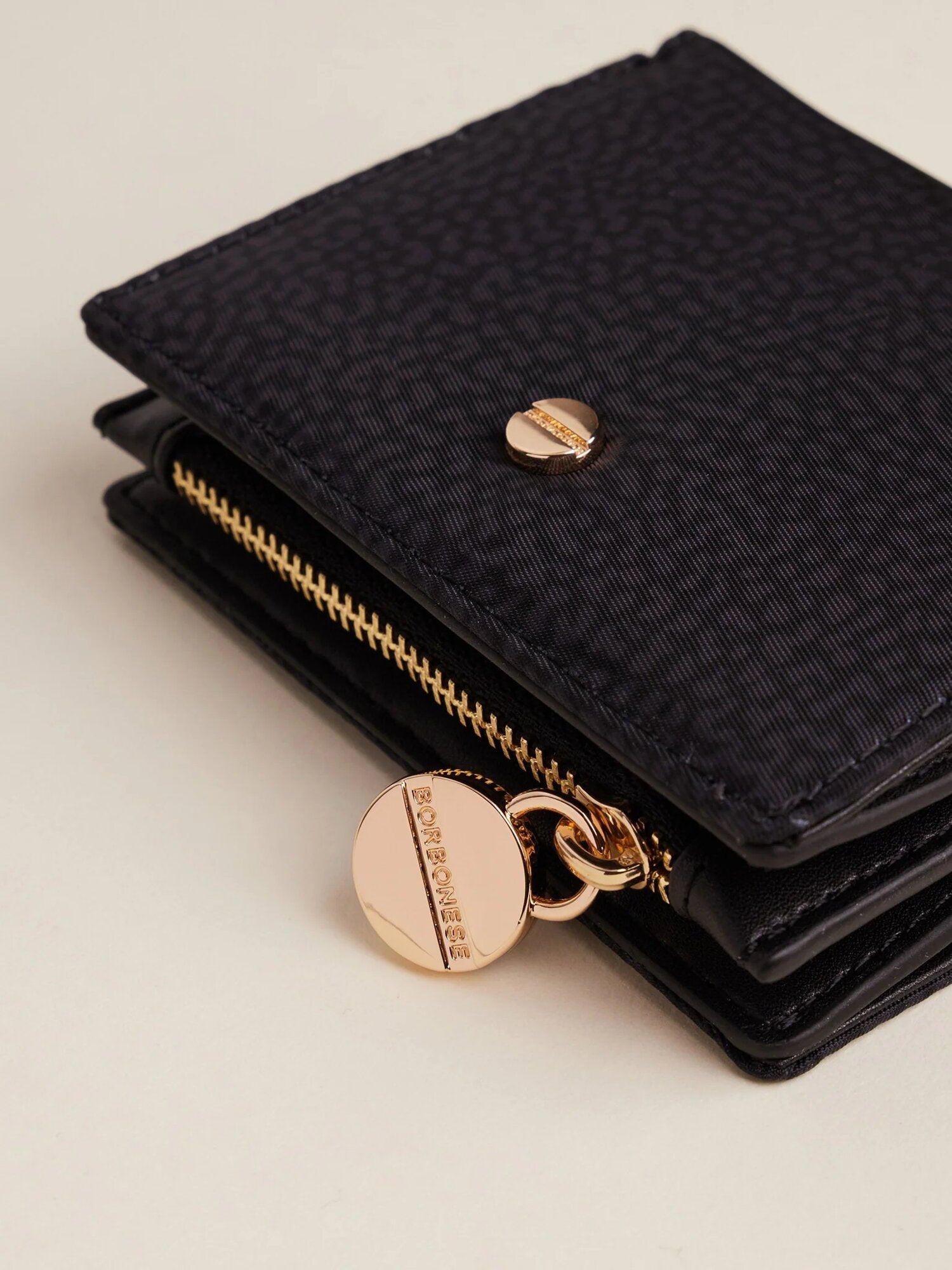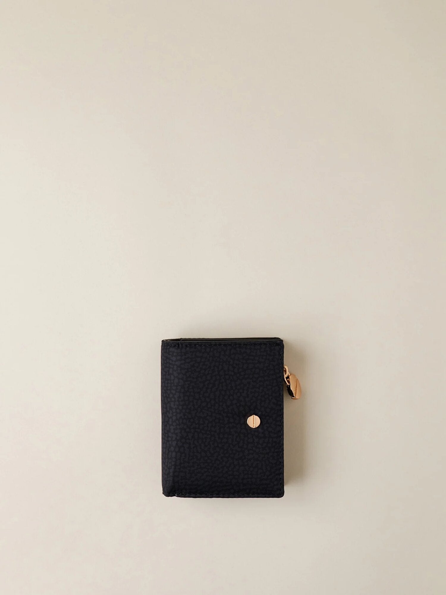 Interno foderato ricco di scomparti, portatessere e portamonete con zip