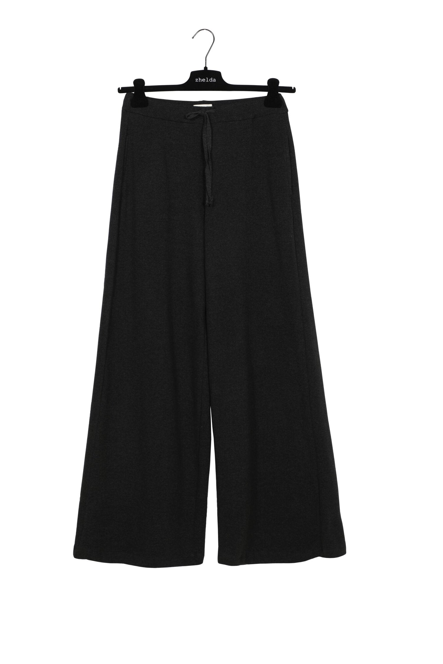 Pantalone morbido con elastico in vita a gamba larga, due tasche frontali e due tasche sul retro.
