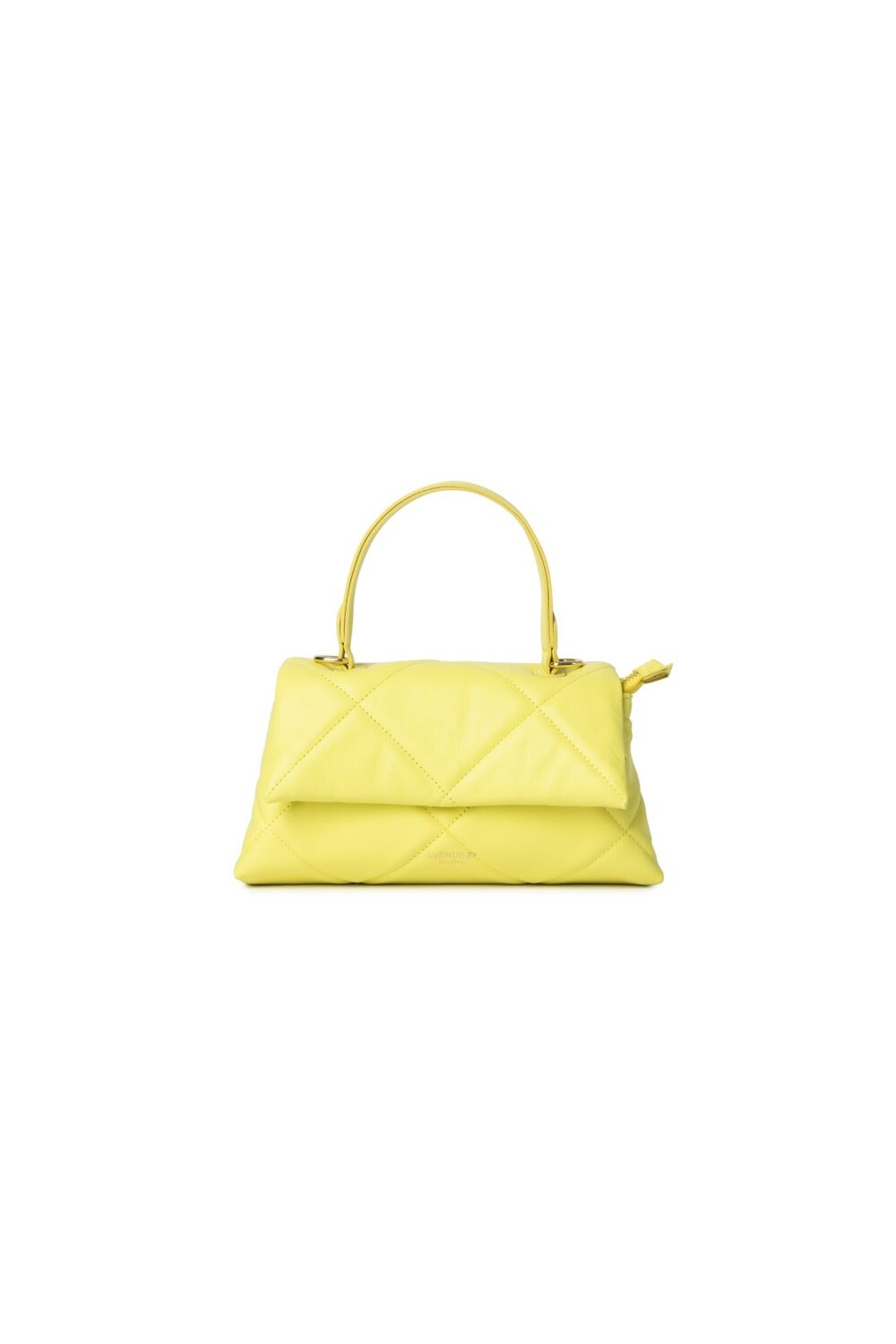 Borsa piccola trapuntata in pelle sauvage, doppio vano centrale con zip, tasca interna con zip, doppia tasca portaoggetti, chiusura con bottone, manico fisso, tracolla rimo- vibile e allungabile mx cm 108.