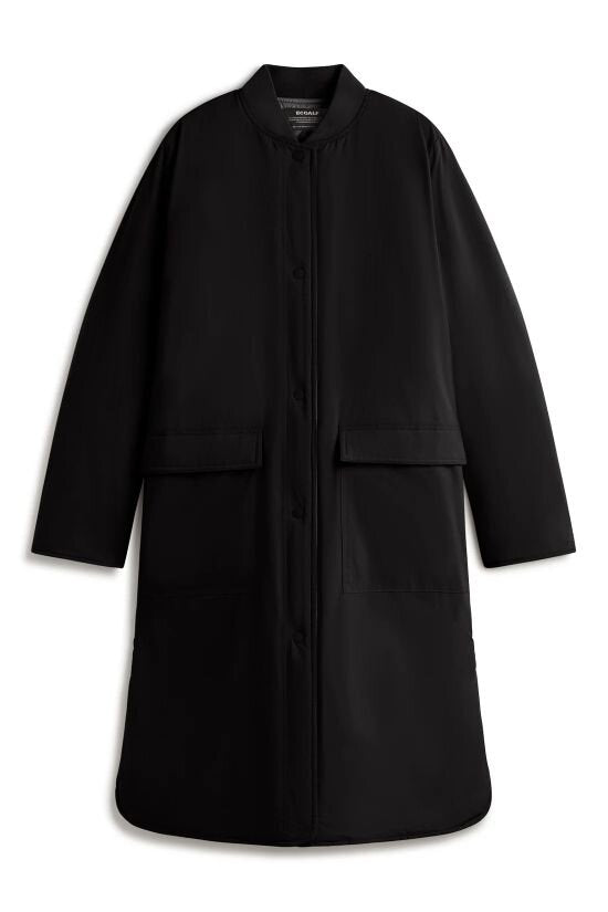Vestibilità oversize, colletto bomber, chiusura centrale frontale con bottoni a pressione, tasche jet su un lato, tasche applicate sullaltro lato, marchio stampato all'interno nella parte posterior, finiture con marchio, idrorepellente, senza PFC.